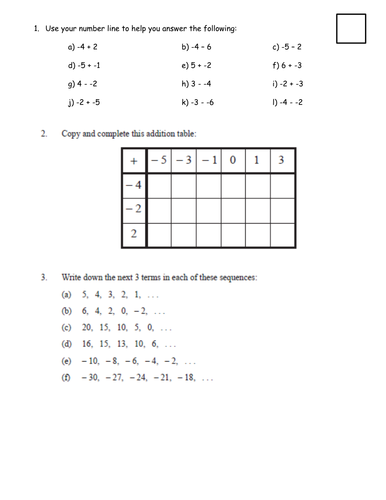 Math worksheets with integers and negative numbers for primary students. Our negative number worksheets are suited for math grade 6 and 7 and are a great math resource for remedial math or math tutoring purposes . We have integer worksheets covering the addition and subtraction of integers and negatives, from number bonds to worksheets with missing addends and subtrahends.